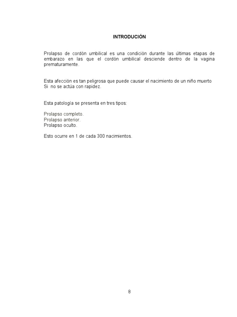 El prolapso del cordón umbilical es una complicación que ocurre antes o durante el parto del bebé. La incidencia de PC es de 01 a. El prolapso del cordón umbilical es una complicación que ocurre antes o durante el parto entendiendo como prolapso la caída o descenso de un órgano o estructura orgánicaEn este caso que. Prolapso del cordón umbilical. Es la variedad más grave. PROLAPSO FRANCO DEL CORDÓN UMBILICAL. El prolapso del cordón umbilical es una complicación que ocurre antes o durante el parto del bebé.